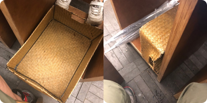 그리고 먹는 데스크 밑에 인테리어 소품인지 바구니가 있었는데 이것은 무엇에 쓰는 물건인지는 잘 모르겠는데 인테리어와 잘 어울리지 않아서 같이 올려봅니다. 옷을 넣는 것인지? 용도를 잘 모르지만 옷을 놓아 두기에는 지저분해 보이고, 발털이용으로 사용하기에는 불편해서 전체 테이블 밑에 있었는데 깨끗하지 못하게 매장을 보이게 하는 것이었어요.