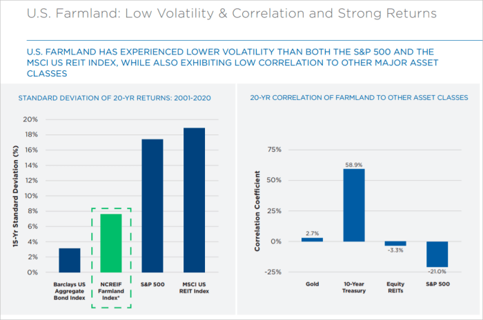 Gladstone의 2013 년 IPO 이후 임대 수익은 13 배 이상 증가되었는데요 농지의 경우는 지난 15 년 동안 S & P 500 지수와 MSCI US REIT 지수보다 변동성이 낮았기 때문에 좋은 투자 거리가 되고 있습니다. 코로나 시대가 도래를 하면서 농지 관련 리츠의 경우는 코로나로 인한 변동성이 낮아 영향을 덜 받은 산업으로 재무적인 수치로 생산성을 입증을 하고 있습니다.