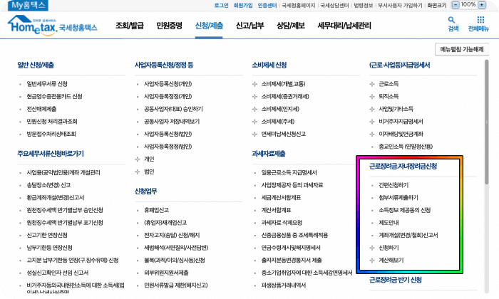 ▼정기 근로 장려금 및 자녀 장려금 / 반기 근로 장려금 신청하는 곳 ▼