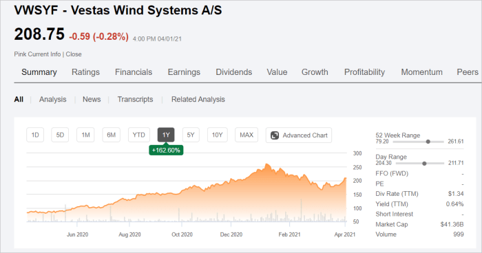 ▶덴마크 회사 인 Vestas Wind Systems ( OTCPK : VWDRY ) ( OTCPK : VWSYF )