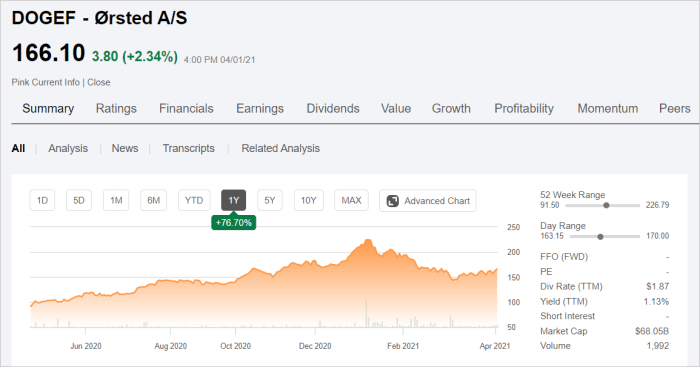 덴마크의 Orsted ( OTCPK : DNNGY ) ( OTCPK : DOGEF )는 해상 풍력 프로젝트의 세계 최대 개발 업체입니다.