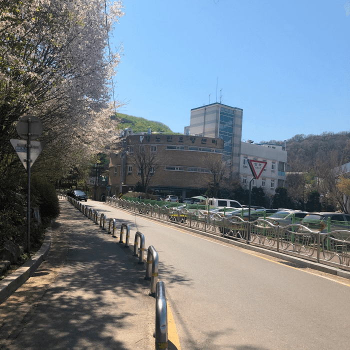 올라가는 길 산책로 가기전의 모습입니다. 참~~ 여러 번 맛있는 곳이 어디냐고 서로서로 물어보면서 처음 와 보았다는 것이 웃기기도 했어요. 차로도 쉽게 갈 수가 있고요, 주차장도 아주 넓게 되어 있었어요. 개인적으로는 가까운 곳에 사시는 경우라면 그냥 걸어도 오시면 좋겠다는 생각을 했어요. 특히 봄에는 차로 오는 것보다는 걸어서 오면 등산하는 느낌이 들었어요.