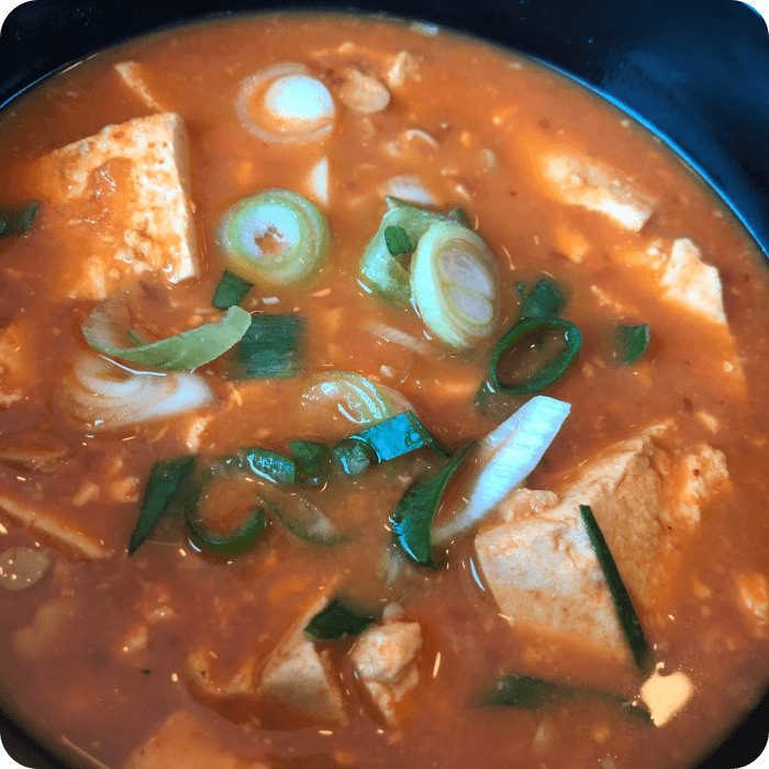 얼큰 순두부처럼 보이는 것이 청국장인데요 슈퍼 푸드 국내산 콩을 가지고 된장을 단 1% 도 첨가하지 않고도 냄새를 없애 특허출원(10-2001-5666, 10-2001-5667)한 청국장으로 만든 것이었어요. 헐~ 대박!! 맛이 예전에 집에서 만들어 먹던 그런 청국장 맛인데 그보다 더 진한 느낌이었어요.